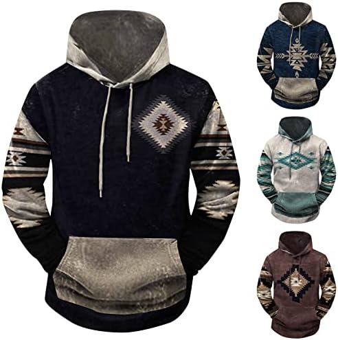 Graphic Hoodies for Men 2023, Mens Western Aztec Print Hoodies Sweatshirt African Dashiki Printed Pocket Pullover