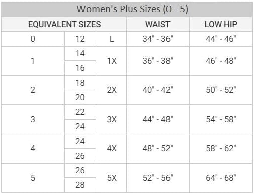 Women’s Junior PLUS SIZES: 0/L/12, 1/1X/14-16, 2/2X/18-20, 3/3X/22-24, 4/4X/24-26, 5/5X/26-35