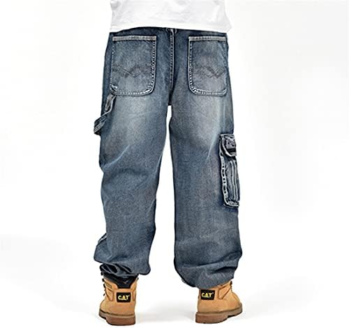SMIOPDES Men’s Biker Cargo Jeans Hip Hop Casual Multi Pockets Dance Skateboard Denim Barrel Baggy Jeans