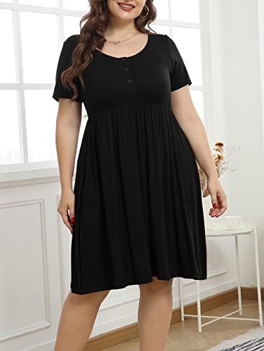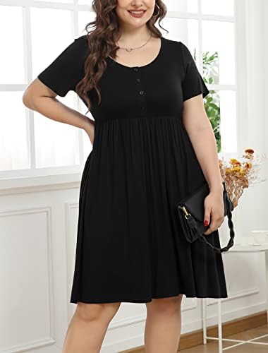 The swing plus size dress it has a slight rounded neckline. The body of the dress has a loose cut which moves with you and each step you take.The hemline is at the upper thigh level.