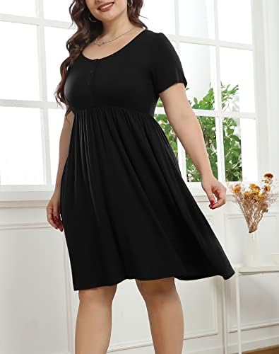 Loose Fit Casual Knee Length Tunic Dress,Plain Pleated Swing Party Dance Dress,Scoop Neck T-Shirt, You can also choose to wear it with a shawl or a belt, any small accessories will make this dress more attractive. Thigh boots or boots can be matched. There are many sizes and colors to choose from. We have solid colors and prints, which will meet your needs.