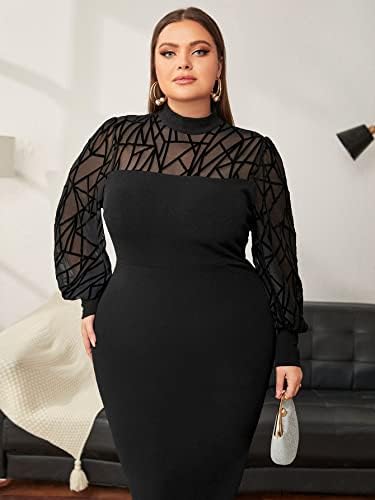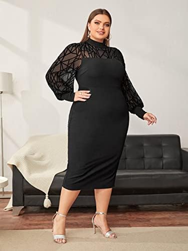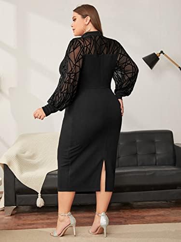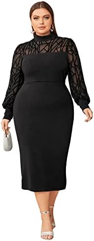 Features: plus size, mesh, long sleeve, split back, bodycon dress