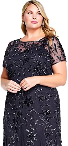 Adrianna Papell Women’s Plus-Size Floral Beaded Gown with Godets