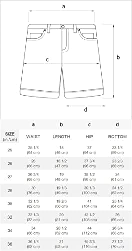 These casual stretchy jean shorts fit true to size. Standard US Sizes: Size Small fits size 25 – size 26; Medium fits size 27- size 28; Large fits size 30 – size 32; X-Large fits size 34 – size 36.