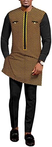 【DESIGN FEATURES】:Classic and stylish African style men’s suit,Traditional african dashiki casual tracksuit 2 pieces set outfit,Chest placket sticker gilding decoration,Stretch waist with drawstring ties,Comfortable to wear