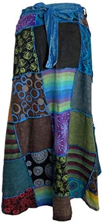 Beautiful vibrant hippie gypsy new design patch work with embroidery cotton wrap skirt is just the way to spice up your wardrobe. Gorgeous Renaissance design and very feminine & timeless. The fabric is 100% cotton. It features the multiple color patches. Sizes available: S/M, L/XL & XXL. The measurement of the skirt(S/M) – Width = 46 inches; Length = 37 inches; L/XL: Width = 48 inches, Length = 37 inches; XXL: Width = 52 inches, Length = 37 inches. It has a 14 – 16 inches rope to tie at the back. It is very comfortable and fit nicely. Made in Nepal exclusively for Agan Traders Customers.