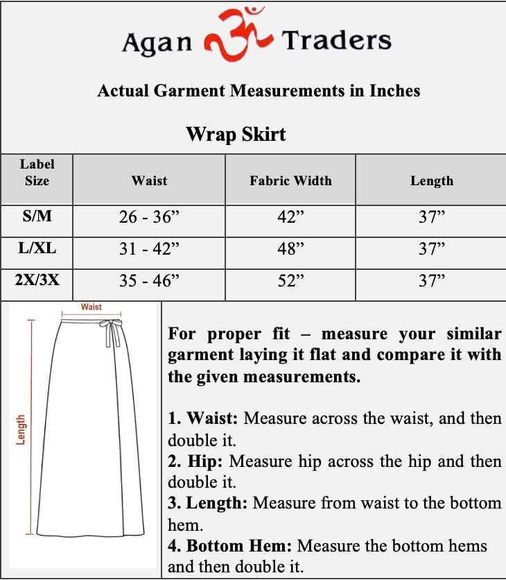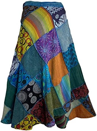 100% cotton maxi wrap patch skirts comes with three different US standard sizes: 4-10 (S-M); 12-18(L-XL); 20-22 (XXL); Boho Skirt Length = 37 inches