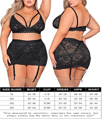 PLUS SIZE,Clothing Brand:AIBINGGE.Tempt and tease in this sultry plus size lingerie set featuring a bralette top with sheer lace cups, a thick underbust band with a scalloped lace trim, a hook and eye back closure, PLUS SIZE suitable for any lady body.