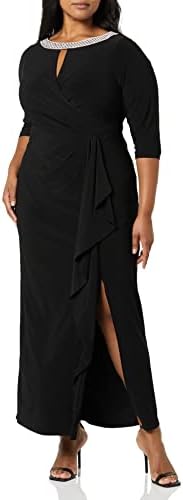 Feel your absolute best in this updated yet classic gown. Featuring dazzling rhinestones, a flattering keyhole neckline, and the perfect cascade ruffle skirt. Pair with your favorite heels for a stunning head to toe look!