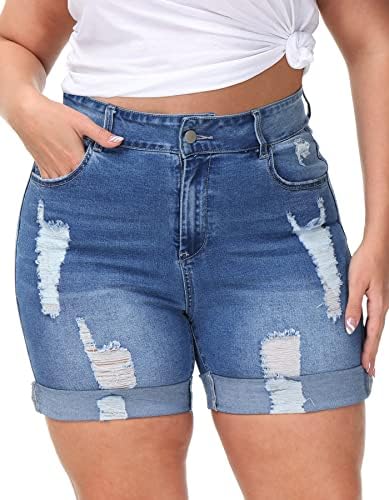 Useful Pockets & Cute Distressed Design—fun ripped and distressed details for decoration,make these plus size jean shorts look more cute and fashion, useful pockets can stash any essentials such as cell phone,keys,cards and small ipod hands-free.