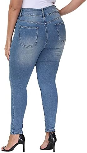 〖Stylish Ripped Style & Distressed Look〗Plus size jeans for women are cut in a skinny fit in the hips,thighs and ankle,enhance your derriere and curves perfectly and to give you a jeggings feels.