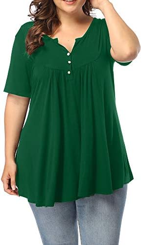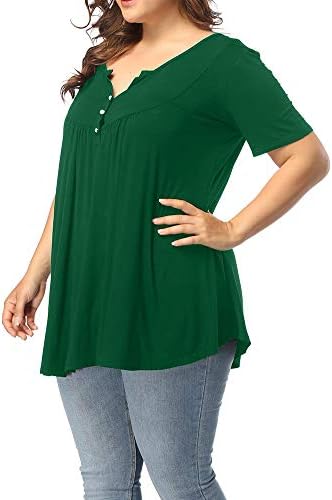 T-shirts for women plus size design with henley v neck,button up for decorate,front pleat style and loose fitting. Swing and flowy short sleeve shirts for women,suitable for summer all days wear.