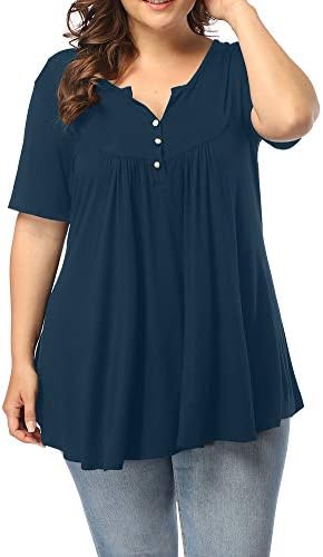 T-shirts for women plus size design with henley v neck,button up for decorate,front pleat style and loose fitting. Swing and flowy short sleeve shirts for women,suitable for summer all days wear.