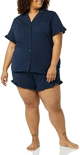 Amazon Essentials Women’s Cotton Modal Piped Notch Collar Pajama Set (Available in Plus Size)