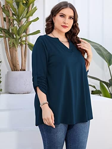 AMCLOS Womens Plus Size Tops T-Shirts Blouses Casual Soft Flowy Tunic Long Sleeve Roll Tab Sleeves with Buttons