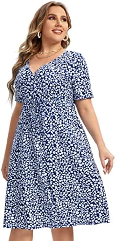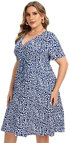 AMZ PLUS Women’s Plus Size Floral V-Neck Dress Knee Length Mini Dresses