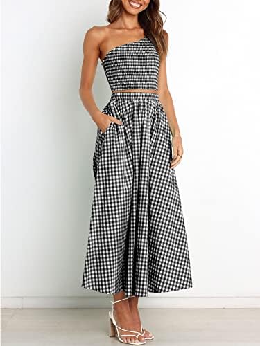 Stylish Design – Flaunt your style in our smocked one-shoulder crop top and high elastic waist long skirt two-piece outfit that comes with pockets and ankle-length skirt.