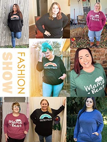 Plus size long sleeve shirts feature v neck/crewneck with pockets