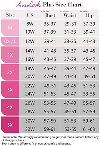 Standard US Plus Size: Auslook specializes in designing clothes for Plus-Size women. We adopt the most common US Size Standard so that you can buy clothes in the correct size easily. 0X/L=(US 12W), 1X=(US 14W-16W), 2X=(US 18W-20W), 3X=(US 22W-24W), 4X=(US 26W-28W) ,5X=(30W-32W).