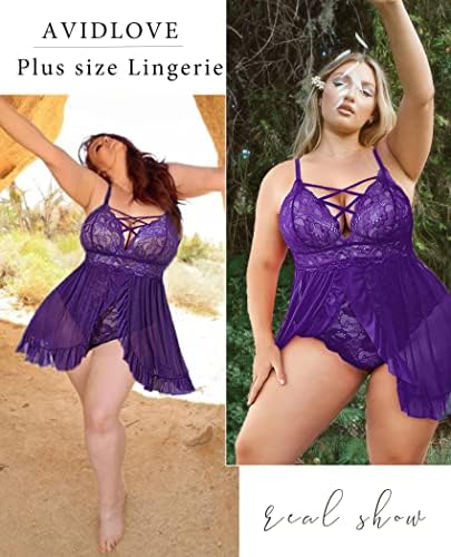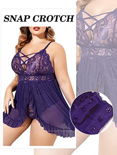 【Material】Plus Size Lace babydoll Lingerie made of 95% polyester and 5% spandex, ultra soft and elastic lace, soft and lightweight.