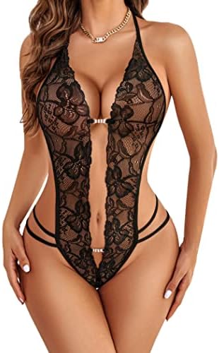 Features: This lace teddy bodysuit features deep v halter neck, beautiful rhinestone in the front, backless design. Very charming and feminine.