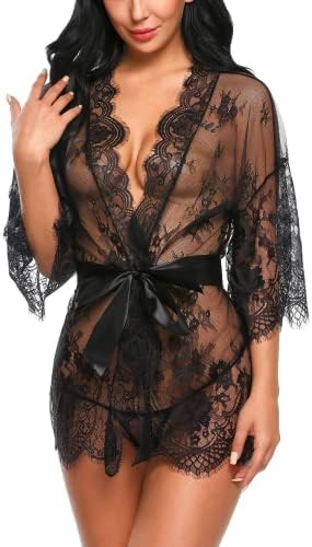 Package Content: 1x Lace Lingerie Robe with G-string and Belt