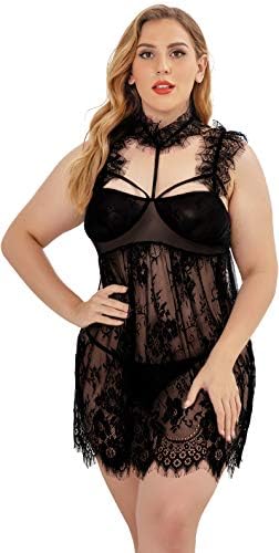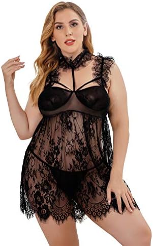 4. 【Occasion】: This plus size lace lingerie set is a perfect gift for Valentine’s Day, bridal lingerie, honeymoon lingerie for wedding night, and boudoir lingerie for romantic evenings. A perfect choice as comfort nightwear pajamas and sleepwear for night sleep as well. Package Content: 1 x Sexy Lingerie Dress, 1 x G Thong Panty.