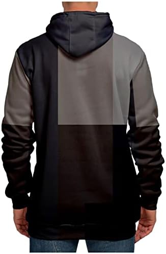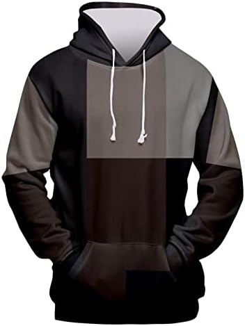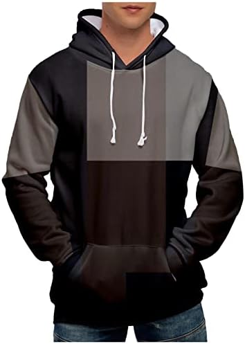 Mens Hoodies Pullover Color Block Fleece Long Sleeve Sweatshirt Tops With Pocket
