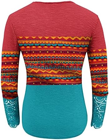 Womens Graphic Tees, Long Sleeve Autumn Shirt Ladies Plus Size Work Basic Stretch Aztec Top Lace Crewneck