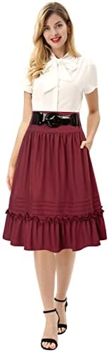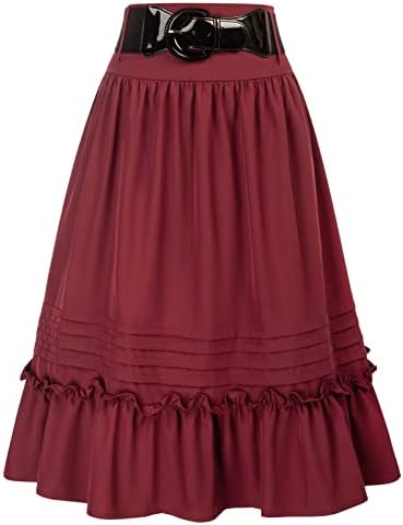 Features: A-Line, Elastic High Waist, Ruffle & Pleated Skirt. Leather belt enriches your collocation. Practical pockets for little stuffs when going out