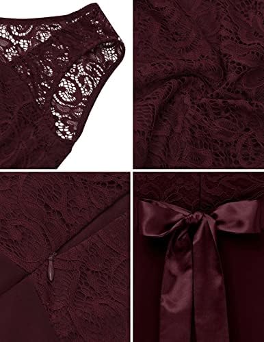 Elegant lace dress, beautiful floral lace, see-through on the top part show out your charm and feminity; Maxi chiffon skirt elongates your figure and legs; undetachable satin belt and bowknot behind adds loveliness to the whole dress.