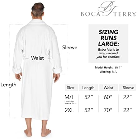 Terry Cloth Robe: Only the finest hotets, resorts and spas use Boca Terry Men’s Bathrobes. This 100% Cotton robe is a medium weight cozy and comfortable plush robe for men that absorbs water like a towel and works great after the shower, a swim in the pool or hot tub or just lounging at home.