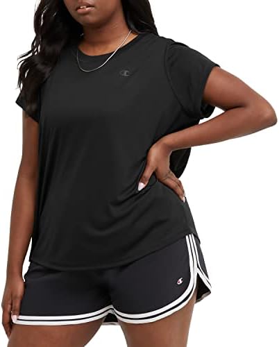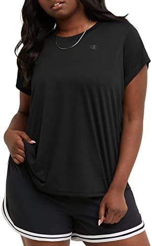 LIGHTWEIGHT TEE FOR YOUR DAILY LIFE. Our Champion® Women’s Crewneck Tee is the ultimate soft-touch, lightweight tee that catches every breeze and lets you keep going. Made for high-sweat activities, this breathable tee wicks sweat, controls odor, and dries quickly. Double Dry™ technology keeps you ultra-cool and comfy as it wicks sweat away for cooler comfort and the fabric resists odor so you stay fresh from start to finish with no distractions. This comfortable crewneck tee shirt for women falls to the top of the hip, making it perfect for pairing with high-rise tights or shorts for a go-to everyday look. And as part of our Champion® Made initiative, our women’s lightweight crew tee shirt is made with percentage of recycled polyester fibers.