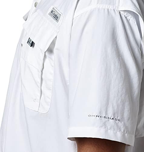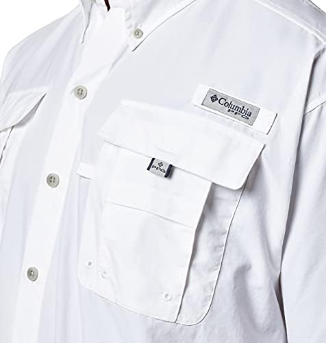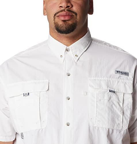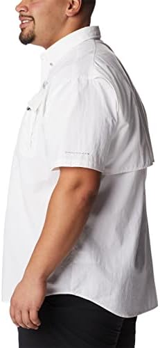 Designed specifically for anglers, this lightweight nylon shirt dries fast, keeps you cool, and protects against UV rays. Mesh-lined back vents make it perfect in hot, humid weather, and tabs let you securely roll up your sleeves. A fishing-ready button-up shirt with a button-down collar. Expect Columbia’s best sun protection tech that helps prevent skin damage during long outdoor events. The fabric provides UPF 50 UVA and UVB protection, while the smooth Tactel nylon taffeta fabric is lightweight and dries quickly to keep you cool. Four self-draining pockets at the chest, along with a gear loop, and rod holder keeps things handy while you work on your next lure. This Columbia short sleeve shirt comes in a range of colors and sizes. Extended sizing available. Relaxed Fit. To ensure the size you choose is right, utilize our sizing chart and the following measurement instructions: For the chest, measure at the fullest part of the chest, under the armpits and over the shoulder blades, keeping the tape measure firm and level.