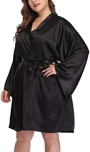 Women’s Plus Size Satin Robes Short Silky Bathrobe Bridesmaid Dressing Gown Nightgown for Wedding Party