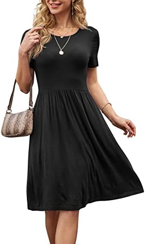 Features: Round neck, Short sleeve, elastic waist and pockets. This dress is light and casual, There is an elastic band at the waist seam.