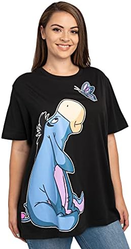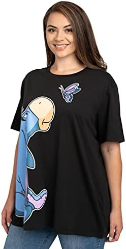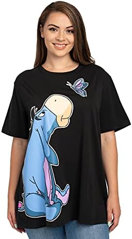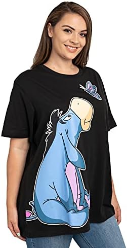 Disney Eeyore from Winnie the Pooh plus size t-shirt – officially licensed. The oversized Eeyore print comes in from the side (it does not display all of Eeyore). There is no print on the back. The soft, thin, lightweight fabric is a cotton/polyester blend. Machine wash cold with similar colors, inside out. Tumble dry low and remove promptly. Do not iron decoration.