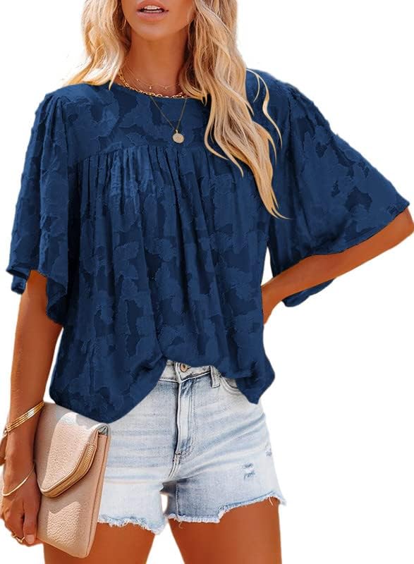 High-quality – Women 3/4 Bell Sleeve oversize Blouse Adopts The Classic Slim Fitting T-Shirt Style In Solid Color; This Floral Textured Babydoll Shirts Is Lightweight, Breathable,The Tunic Tops Will Go Well With Most Figure