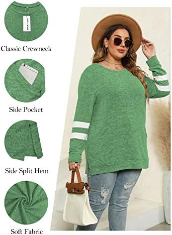 Womens plus size sweatshirts designed with loose fit, functional pocket, side split and stripes long sleeve, classic and basic style is never out of date