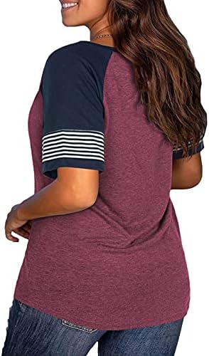 Plus size tops feature cute v neck and raglan striped short sleeve, purely feminine and alluring