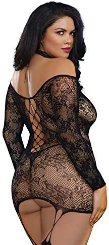 This incredibly sexy, plus-sized lace patterned knit garter dress features faux lace-up details and attached stockings. Highlights include: an attached lace collar with lace-up detail. Reversible: can be worn with lace-up in front or in back. Thong not included. Perfect for anniversary gifts, bridal lingerie, holidays, honeymoon, girly gifts, or romantic evenings. Dreamgirl offers a full range of unique, internationally-lauded Lingerie styles including luxe hanging Lingerie, playful bedroom costumes, flirty lounge wear, provocative hosiery, and romantic cost-conscious packaged intimates. All Dreamgirl collections are custom designed in los Angeles, ca and created with the highest-quality fabrics, trims, and embellishments. Dream girl is dedicated to fulfilling dreams and desires For women of all ages and sizes, Offering select styles in sizes ranging from XS to plus-size 3x. For more detail on finding your perfect size, Please view Our size chart.