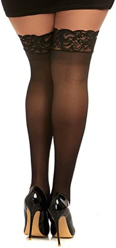 STYLE AND COMFORT: Our styles are available in standard pantyhose sizes One Size fits A-B-C-D and One Size Queen fits E-F sizes. A stylish durable high-elastic fashion pattern lace top can fit around thick thighs comfortably.