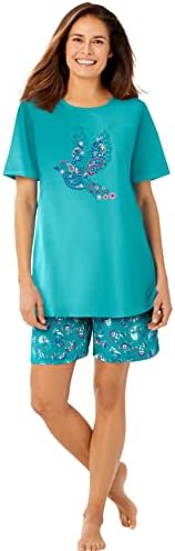 A cute and comfy set that will give you sweet dreams. This easy set includes a breathable cotton top and stretch cotton shorts with an elastic pull-on waist for ultimate comfort. Tee & shorts set Side slits at tee hemTop: 26″ length; shorts: 5″ inseamCotton; heather grey is cotton/poly; importedMachine washable