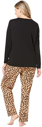 Add some fun to bedtime with this soft cotton knit pajama set that features a graphic print top and matching printed bottoms. The long-sleeved top and pants are done in a relaxed fit to keep you extra comfortable. Snuggle up for the season in something super cozy and cute. Elastic waistband Womens: Top: 28″ length; pant: 28″ inseam Petite: Top: 26″ length; pant: 27″ inseam Pure cotton; heathers are cotton/poly, imported Machine wash