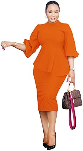 Elegant Ruffle Sleeve Round Neck Bodycon Midi Pencil Dress
