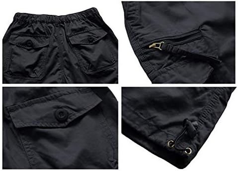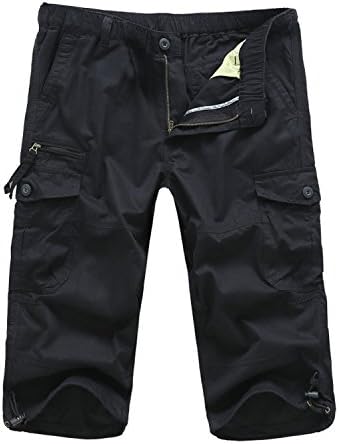 EKLENTSON Men’s Casual Twill Elastic Cargo Shorts Below Knee Loose Fit Multi-Pocket Capri Long Shorts