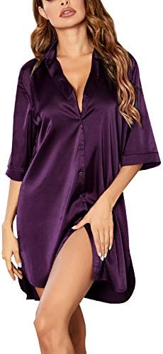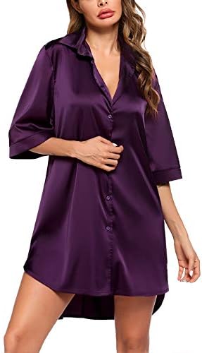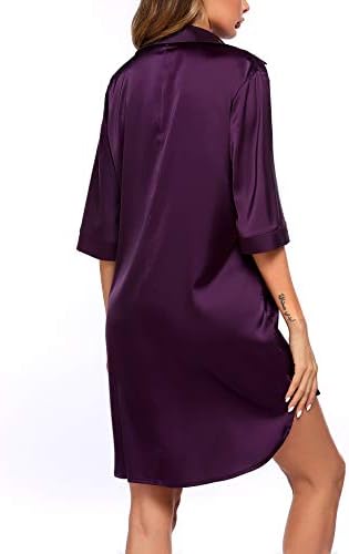 Ekouaer Women’s Nightgown Button Down Sleepshirt Satin 3/4 Sleeve Nightshirt Boyfriend Notch Collar Sleepwear