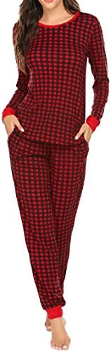 【Plaid Pajama set】Long sleepwear set all designed in eye-catching classic plaid to create women’s soft and cozy pj set,round neck & long sleeve & elasticity is great for women to sleepwear/lounge wear/underwear