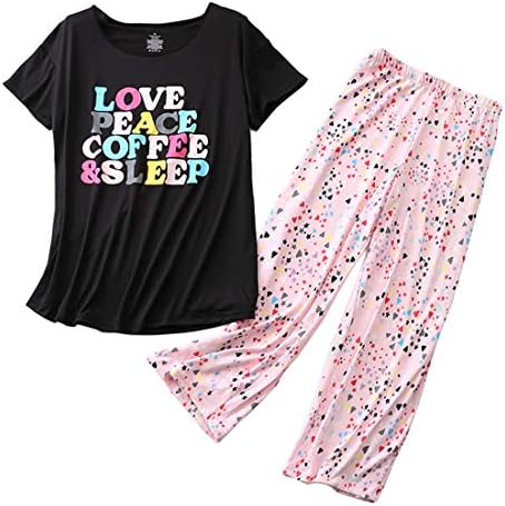 PJS DESIGN & FEATURES:Cotton two-piece pajamas,V-neck and short sleeve top, comfortable capri pants, elastic waist, don’t worry about too loose or too tight. Cute cartoon print, eye-catching visual effect. Standard process, no shrinking, no wrinkling, no fading