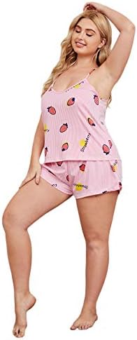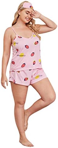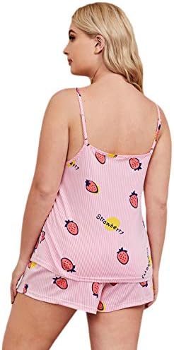 Spaghetti strap, plus size,cherry print, cami top, elastic waist, shorts, 2 piece sleepwear suit
